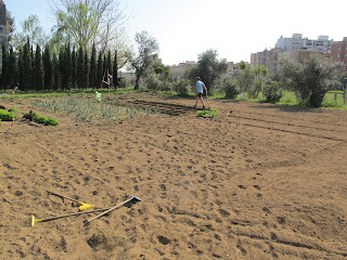 Les verdures que més ens agraden són les de primavera-estiu, tomates, albergínies, pebrots, carabassons, cogombres, melons, síndries, cebes, maduixeres... L´hort a la primavera és molt agraït. Ensumar l´olor que fan les tomateres, mossegar un pebrot verd cruixent, les maduixes amb nata, una tallada de meló i de síndria fresca, mmmm... Abans de plantar cal remoure la terra i fer els cavallons. Quina feinada hem tingut tot el dia! Demà plantarem cebes i maduixeres. La Sara, la Judit i en Jordi han disfrutat ajudant-nos i jugant amb l´aigua i la terra. A més a més ha fet un dia esplèndid i els nens, com qui no vol la cosa, han acabat regant-se amb l´aigua fins acabar xops de dalt a baix...